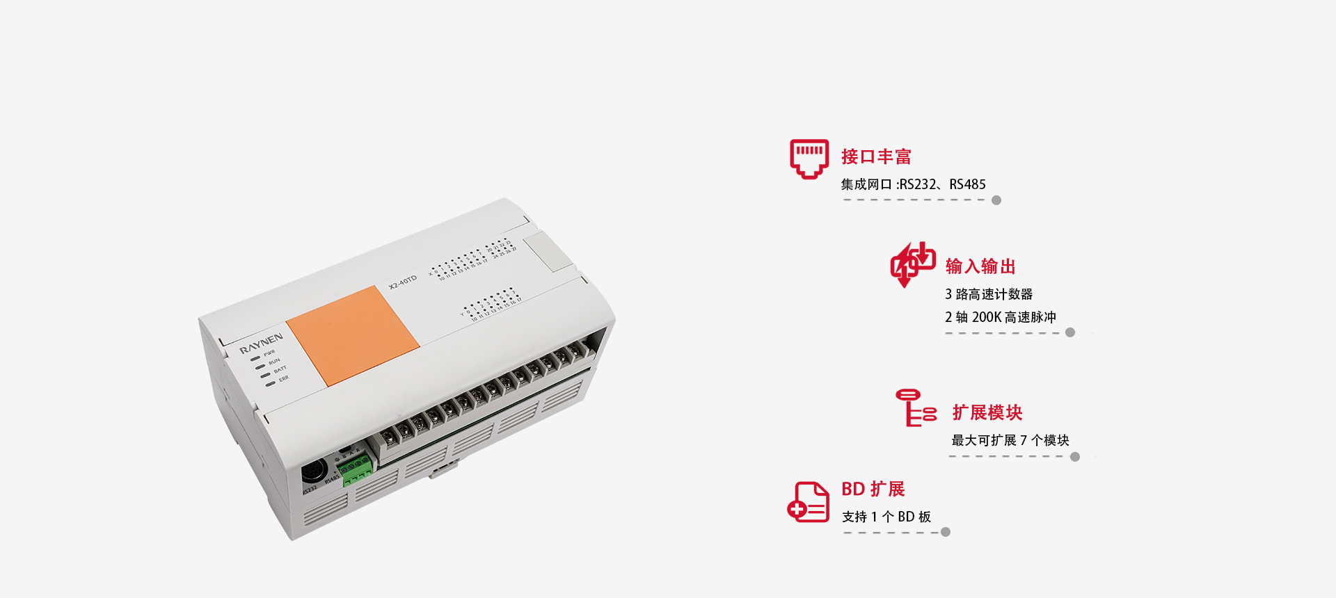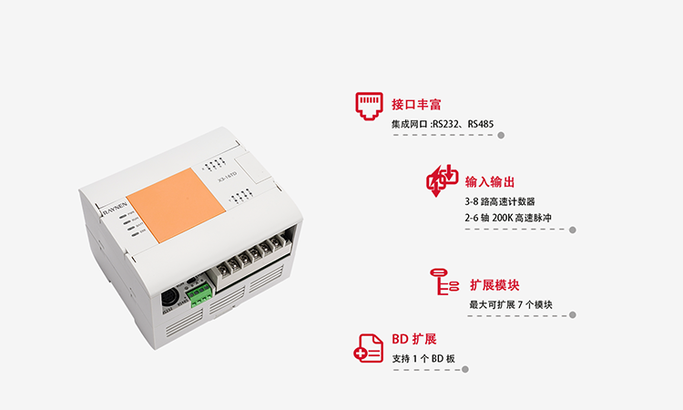 ▲ 具备直线插补、两轴高速脉冲输出、高速计数等运动控制功能
